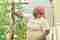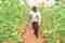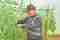 John Mwangi, Mary Wambui's husband, inspecting the tomato plants at their farm in Turi. He says the neighboring farmers are eager to adopt the grafting technology after seeing the success on their farm. Photo credit: Kurian Musa/Egerton University, 17th October