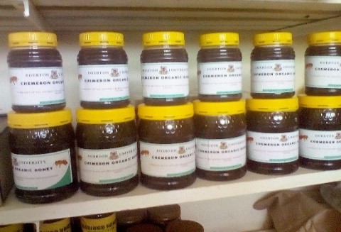 Several hives have been set up around the Chemeron land and periodically, honey is harvested, harvested, processed and packaged for sale. At present one kilo of honey is sold at ksh700 while a half goes for Ksh350. Most of the honey has always been sold at Egerton University, Njoro main campus but with the new developments our honey can now be found easily at the new Egerton Mart found at the University’s Main Gate.