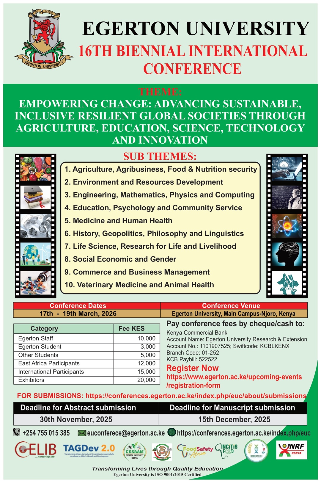 Theme:Empowering Change: Advancing Sustainable, Inclusive, and Resilient Global Societies through Agriculture, Education, Science, Technology and Innovation.