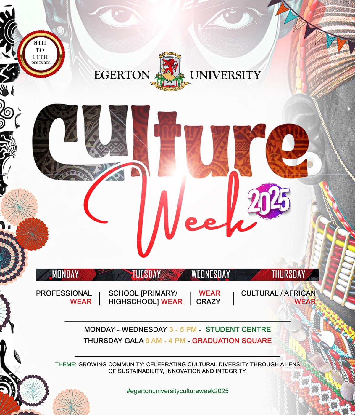 Egerton University Cultural Week 2025 Egerton University will host its vibrant Culture Week from December 8th to 11th, 2025, celebrating cultural diversity.