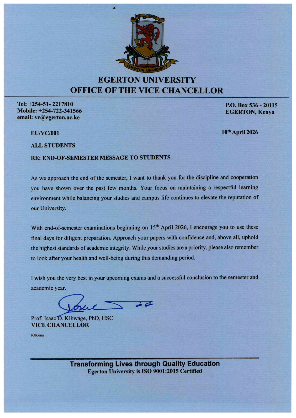 Egerton University use cookies to enhance your experience on our website. By browsing this website, you agree to our use of cookies. Read more about our