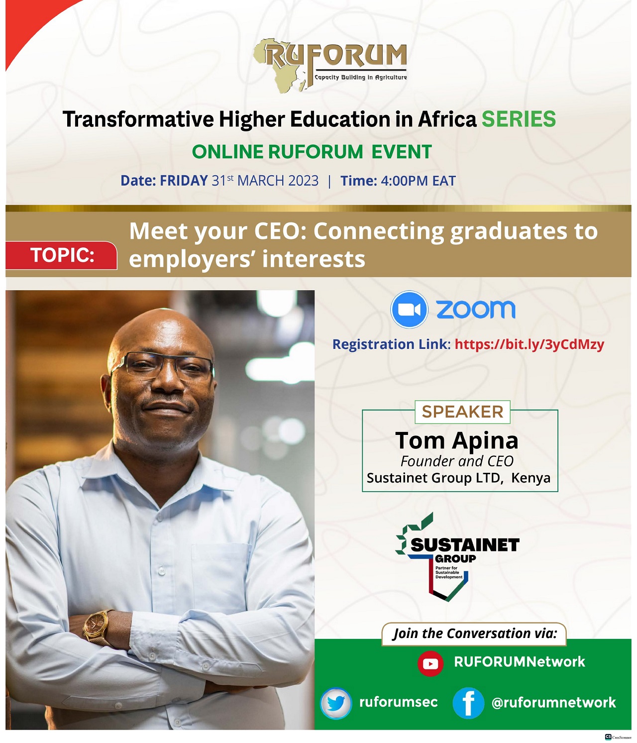 The Transformative Higher Education in Africa SERIES ONLINE RUFORUM will be held on Friday, March 31st, 2023, from 4.00pm EAT