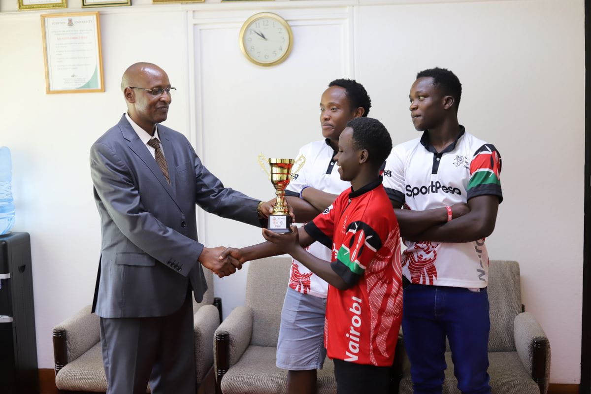 In his office this morning ,the trophy was officially received by Prof. George Muthaa, Deputy Vice-Chancellor for Administration, Finance, and Planning.