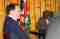 Professor Chen Kunsong (Left), Professor Chen Yunsong, Vice President, Nanjing University, gifts with Vice Chancellor Prof. Isaac Kibwage (Right) in the boardroom during the traditional Chinese instrument orchestra performance at Egerton University. (Photo: Kurian Musa/ Egerton University)