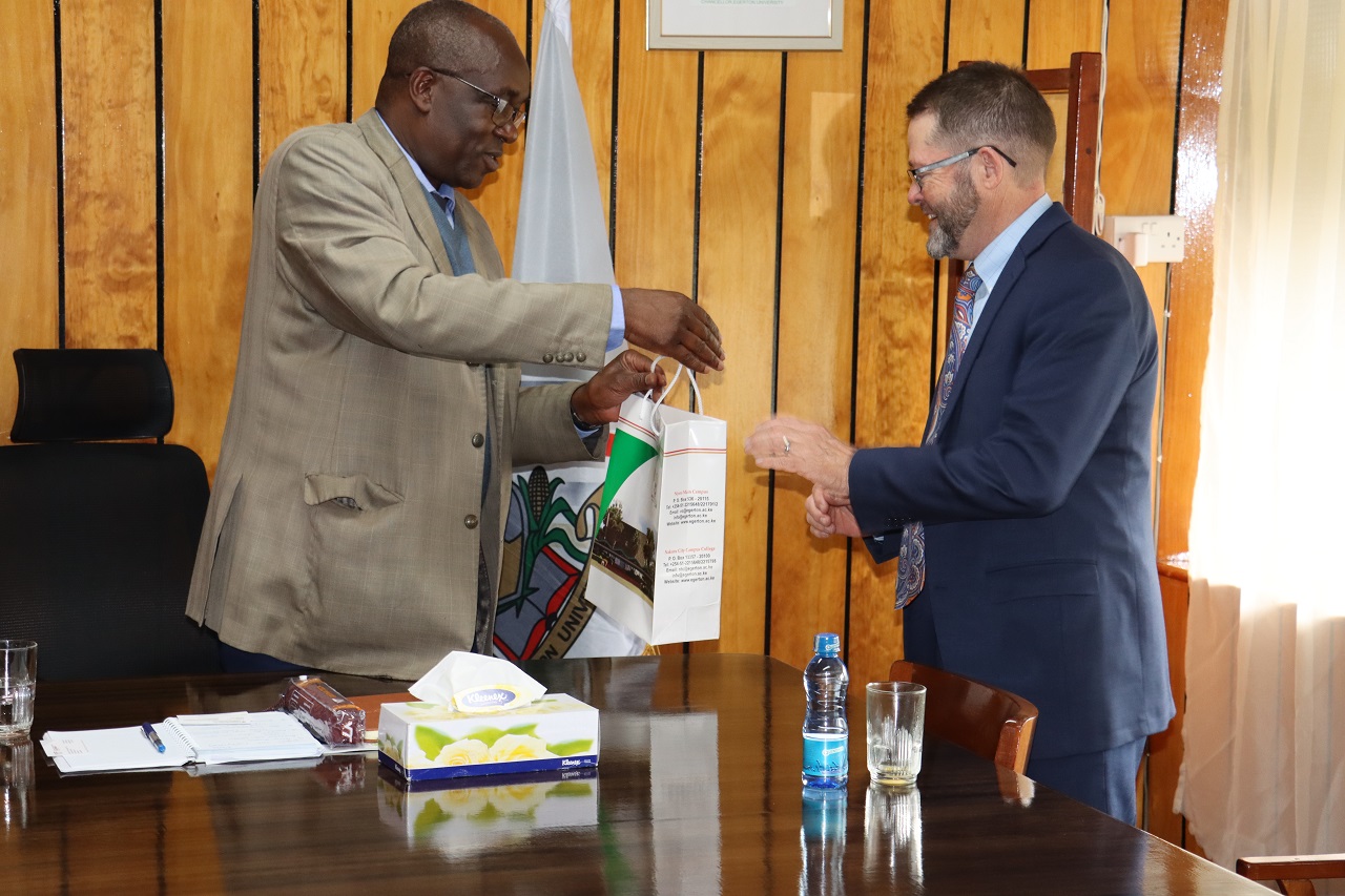 In a move that saw a raft of issues discussed, the Deputy Vice Chancellor In charge of Academics, Research and Extension Professor Bernard Aduda led the discussions during the courtesy call at the Vice Chancellors Board room. They engaged in discussions aimed at fostering academic collaboration and mutual growth between the two institutions.