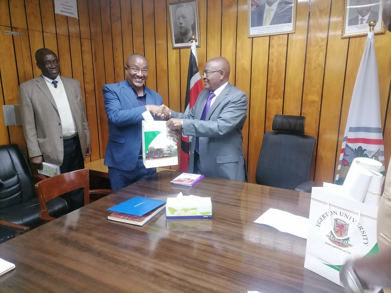 In the Vice Chancellor Prof. Isaac Kibwage’s boardroom, he was accompanied by Deputy Vice Chancellor for Academic Affairs and Research (ARE) Prof. Benard Aduda, Deputy Vice Chancellor for Administration Planning and Development (APD) Prof. Richard Mulwa, Director of International Linkages Prof. Charles M'erimba, Director of Timetabling and Environmental Science Professor Gilbert Obwoyere, and Dean of the Faculty of Environment Prof. Wilkister Moturi, received the proposal with keen interest.